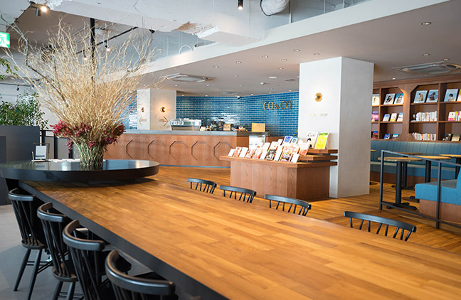 カフェの雰囲気を感じながら勉強できる、木の温もりが心地よいコワーキングスペースです。「カフェラウンジ」は、どの席でも通話や食事ができます。